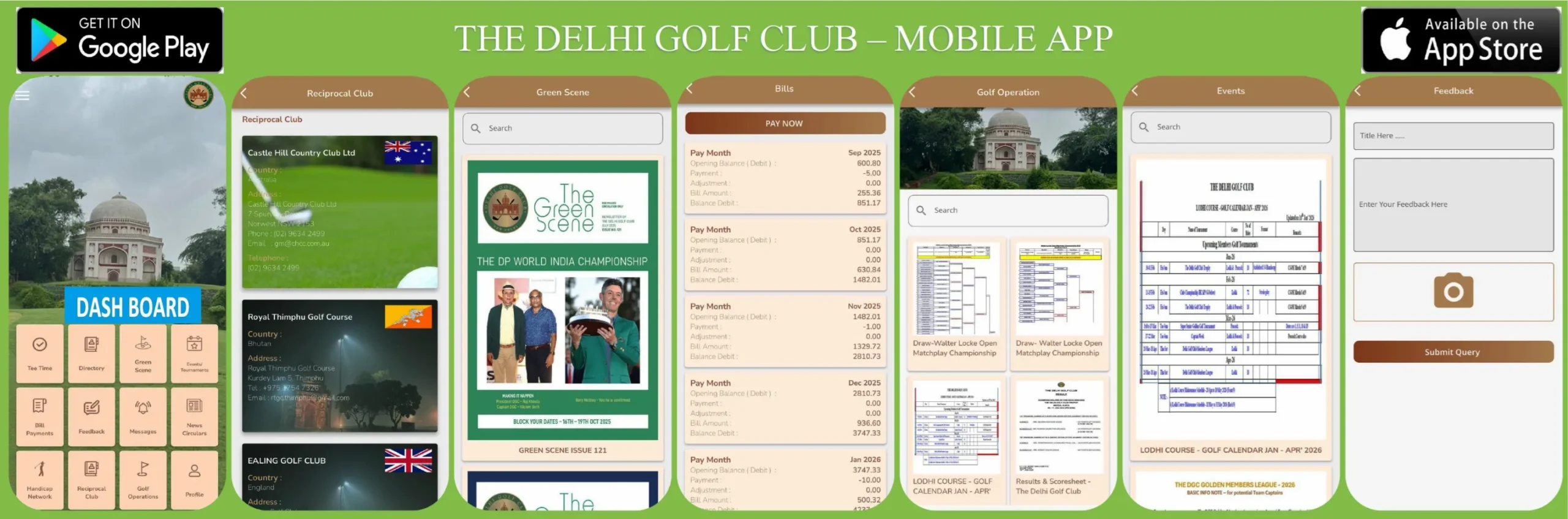 The Management is pleased to inform that the new version of ‘THE DELHI GOLF CLUB MOBILE APP’ is now available for downloading at the App store (iOS) / Play Store (Android).